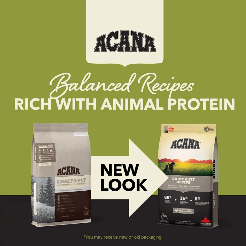 ACANA HERITAGE Light & Fit is geschikt voor alle volwassen honden van 1 jaar of ouder. Het voer is samengesteld uit 3 verschillende soorten vlees die je hond zal bekoren. Honden met overgewicht hebben baat bij dit eiwitrijk en koolhydraatarm voer dat de ontwikkeling van mager spierweefsel stimuleert.