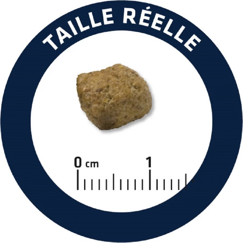 Maïs, gedehydrateerd gevogelte-eiwit, bietenpulp, maïsglutenmeel, gerst, dierlijk vet, erwtenvezel, gehydrolyseerd dierlijk eiwit, calciumfosfaat, kaliumchloride, visolie, zout.