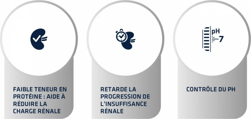– Verlaagd natriumgehalte: compenseert en reguleert het onvermogen van de nier om uit te scheiden.