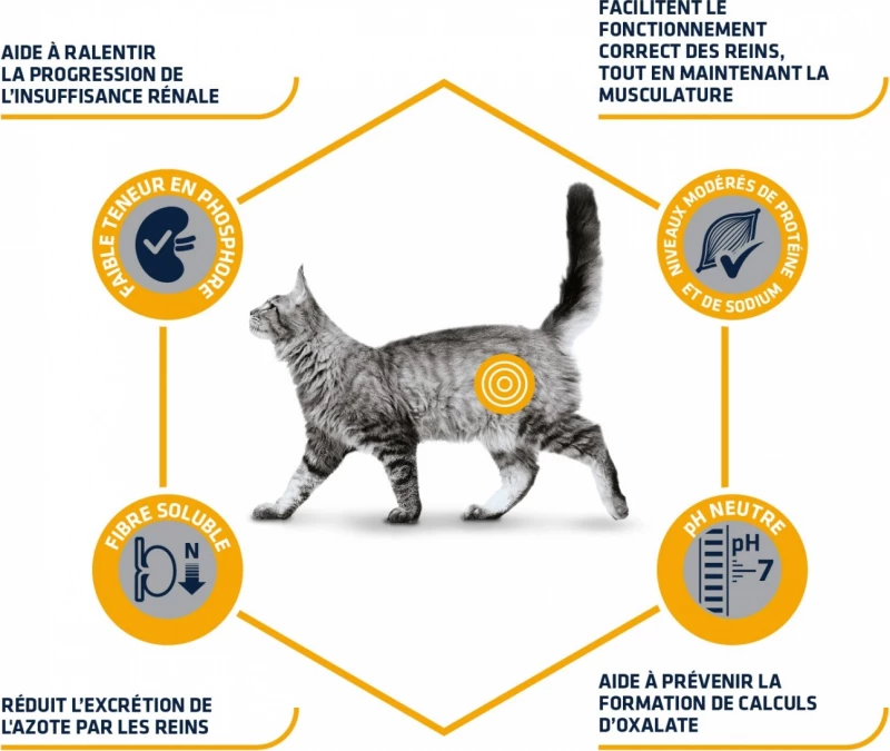 – Kattenvoer met laag fosforgehalte: helpt hyperfosfatemie voorkomen en vertraagt ??de voortgang van nierfalen.