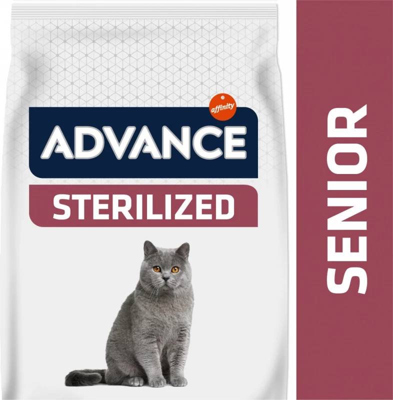 Affinity Advance Sterilized +10 jaar voor senior katten wordt aanbevolen voor gesteriliseerde oudere katten van alle rassen ouder dan 10 jaar. Ze helpen obesitas te voorkomen door de inname van metaboliseerbare energie te verminderen. Ze hebben ook een hoog vezelgehalte om verzadiging te bevorderen en een ideale verhouding eiwit / vet om de spiermassa te behouden.