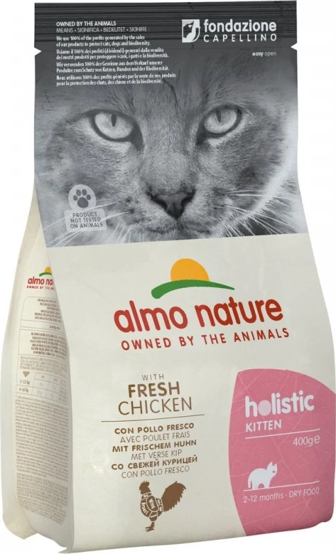 Deze ALMO NATURE PFC Holistic Kitten zijn voedzaam, licht verteerbaar en bestaan ??uit natuurlijke voedselingrediënten voor een complete en uitgebalanceerde maaltijd. Almo Nature Holistic brokjes met kip worden bereid met vers vlees (tot 26%) en zijn ideaal voor gevoelige kittens met voedselallergieën. Ze worden aanbevolen voor kittens van alle rassen, van spenen tot een jaar oud. Dankzij een hoog gehalte aan vitamine D en calcium versterken ze het immuunsysteem en garanderen ze sterke botten. De korte lijst met ingrediënten in dit voer garandeert een uitzonderlijke kwaliteit en een maaltijd.