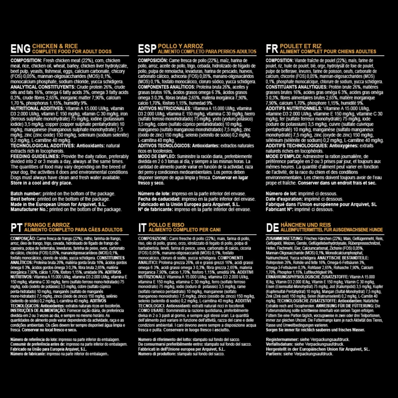 Ingrediënten voor ARQUIVET Adult Chicken & Rice