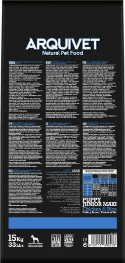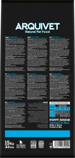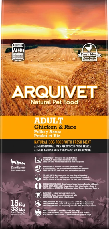 ARQUIVET Adult Chicken & Rice brokken worden aanbevolen voor volwassen honden van alle rassen, van 10 maanden tot 10 jaar oud. De versterkte formule helpt de natuurlijke afweer van je hond te behouden dankzij de manano-oligosacariden die zijn darmflora stimuleren. Omega 3, Omega 6, zink en vitamine A-zuren zorgen voor een gezonde huid en glanzende vacht.