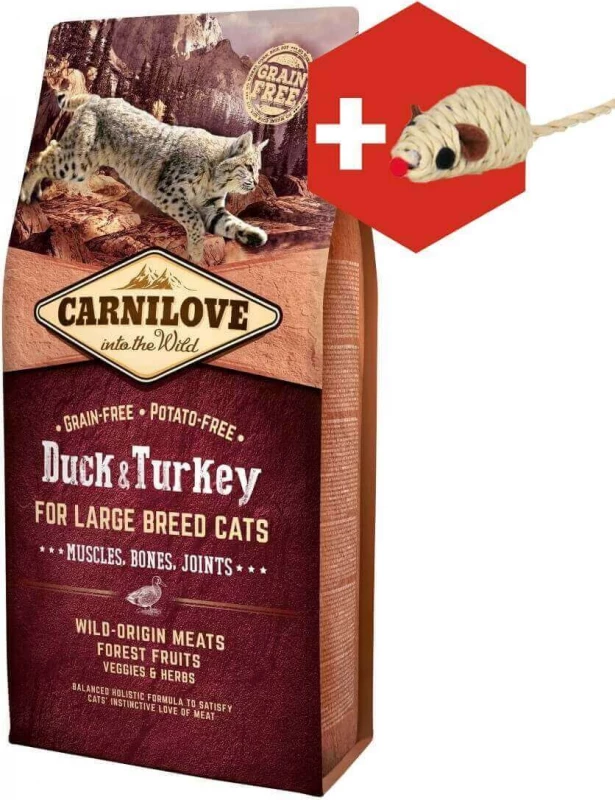 Carnilove Eend & Kalkoen is een droogvoer van hoge kwaliteit voor volwassen katten van grote rassen. Het voer van Carnilove is steeds ontwikkeld met inachtneming van de eetgewoonten van katten in de vrije natuur.