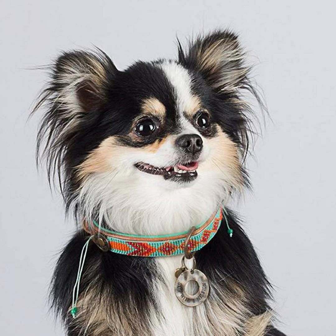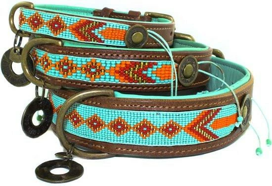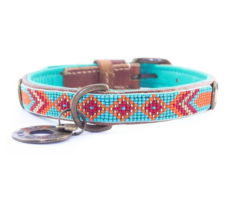 De Dog with a Mission Paddy Lee is een prachtige turquoise kralenhalsband met oranje accenten! De kralen zijn stevig in het leer genaaid en de binnenkant is gemaakt van zacht turquoise leer. Een absolute eyecatcher!