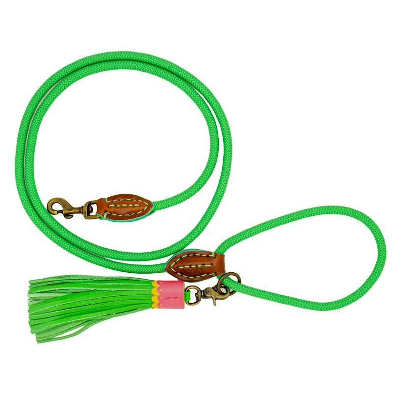 De opvallende Dog with a Mission hondenlijn Apple Pie is echte eyecatcher! De riem is gemaakt van stevig polyester touw waardoor hij tegen een stootje kan. De riem is afgewerkt met echt leer en aan iedere riem hangt een uniek bedeltje.