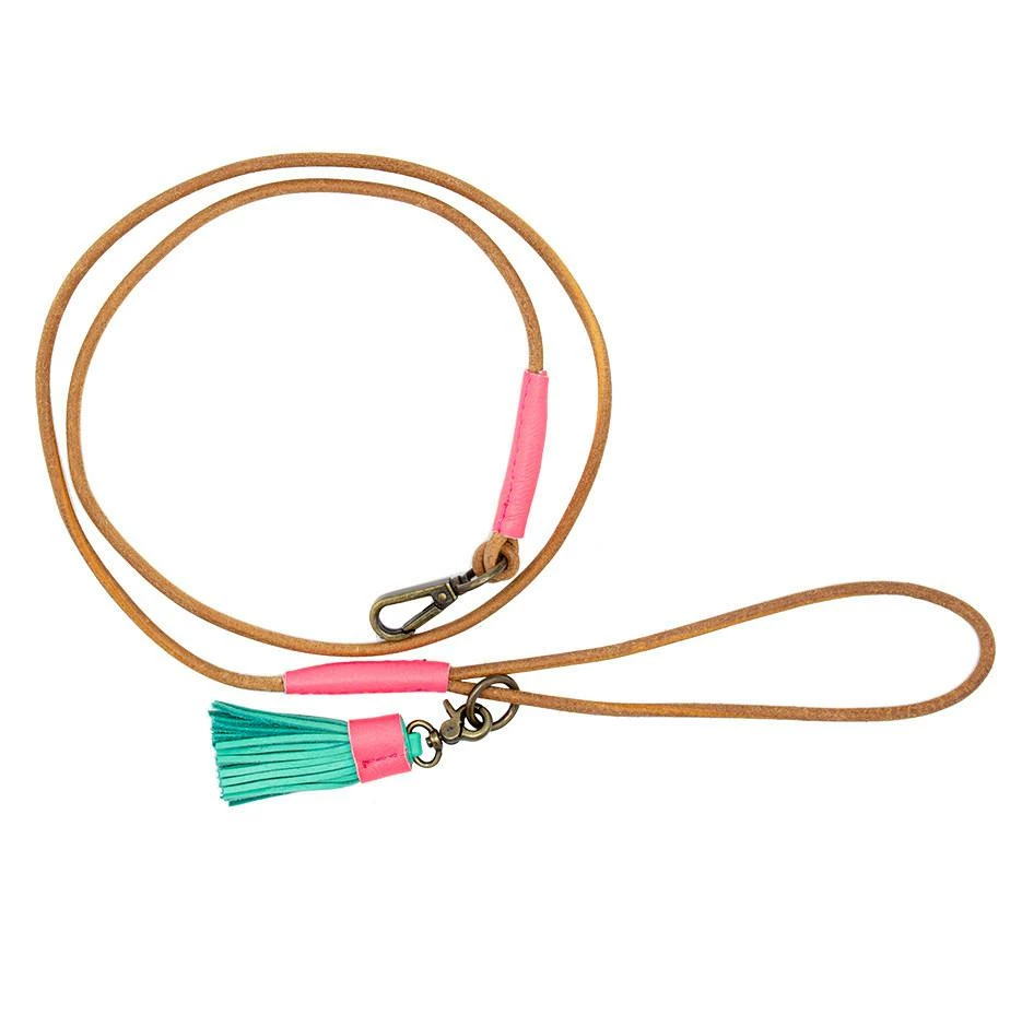Compleet met Dog with a Mission style details is deze riem uitgerust met het authentieke turquoise kwastje en voorzien van roze leren details en heeft een lengte van 135 cm.