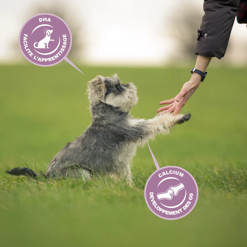 Het voer bevat DHA, dat het leervermogen van je puppy verbetert en je puppy dus beter trainbaar maakt. Het is ook rijk aan prebiotische fos en bietenpulp, waardoor de spijsvertering van je jonge hond gezond blijft. Eukanuba Growing Puppy Medium Breed bevat ook natuurlijke bronnen van omega 6 en 3, die ervoor zorgen dat de vacht en huid van je hond immer glanzend zijn. Daarnaast is het een bron van calcium en Vitamine E en C, waardoor de botontwikkeling en het immuunsysteem van je puppy ondersteund worden.Â
