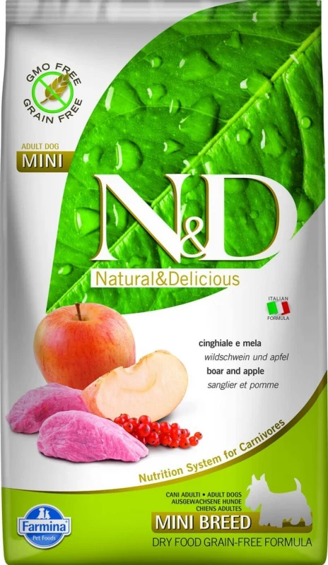 FARMINA N&D Grain Free Mini Breed hondenvoer is ontwikkeld voor kleine volwassen honden. Dit graanvrije voedsel is ontworpen om te voldoen aan een hoogwaardig voedingssysteem in overeenstemming met de aard van onze viervoetige vrienden.