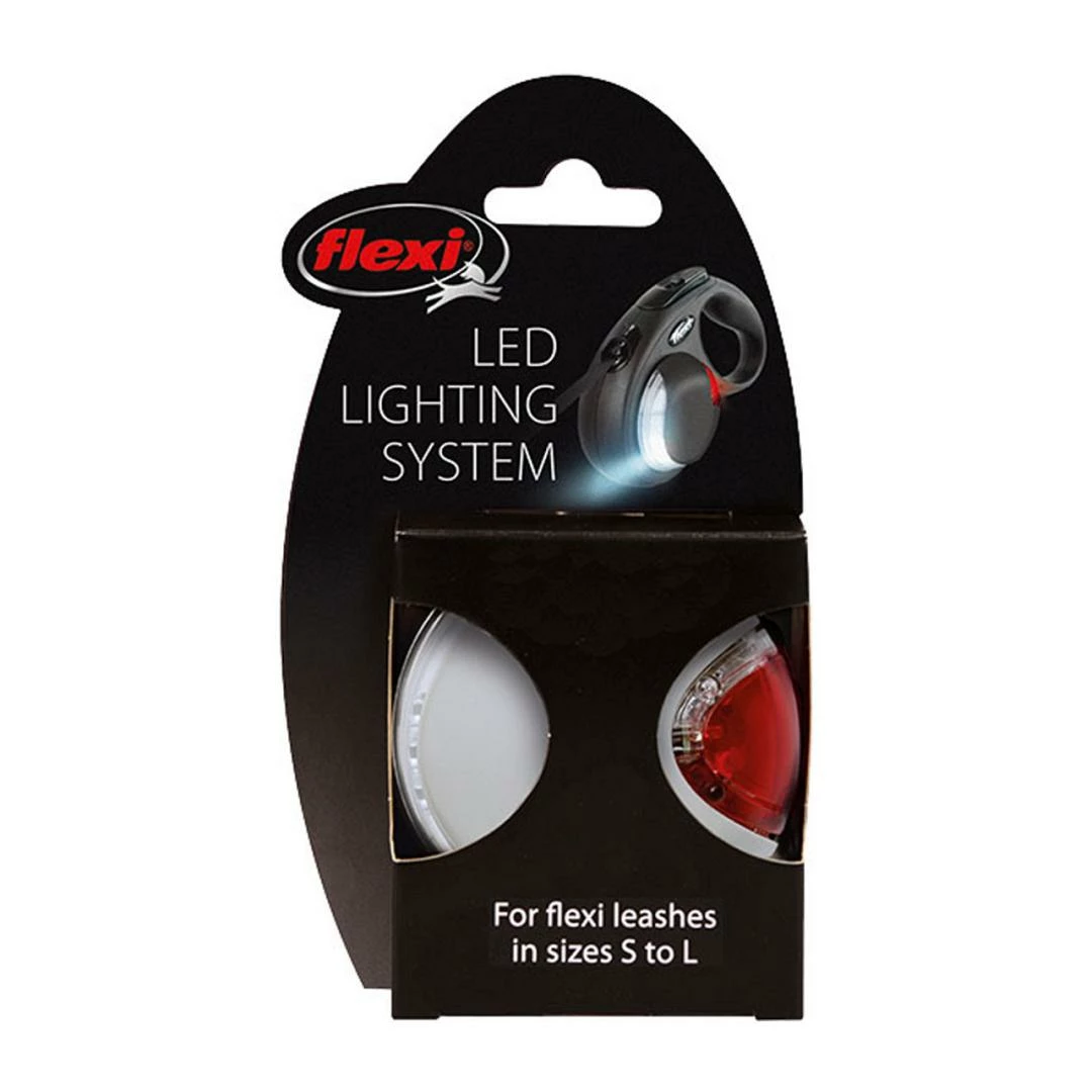 Flexi LED-verlichtingssysteem met afzonderlijk verstelbare voor- en achterlichten en eenvoudige bevestiging met klittenband.