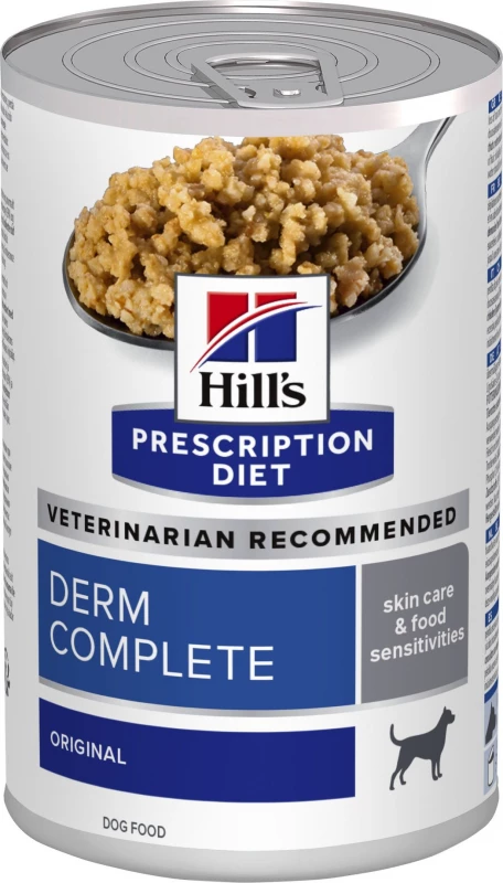 Een voorsprong voor een beter leven. Hill’s PRESCRIPTION DIET Derm Complete hondenvoer in blik is het enige dieet voor voedsel- en omgevingsgevoeligheden. Helpt bij het beheersen van allergieën, droge huid, jeuk en krabben bij honden.