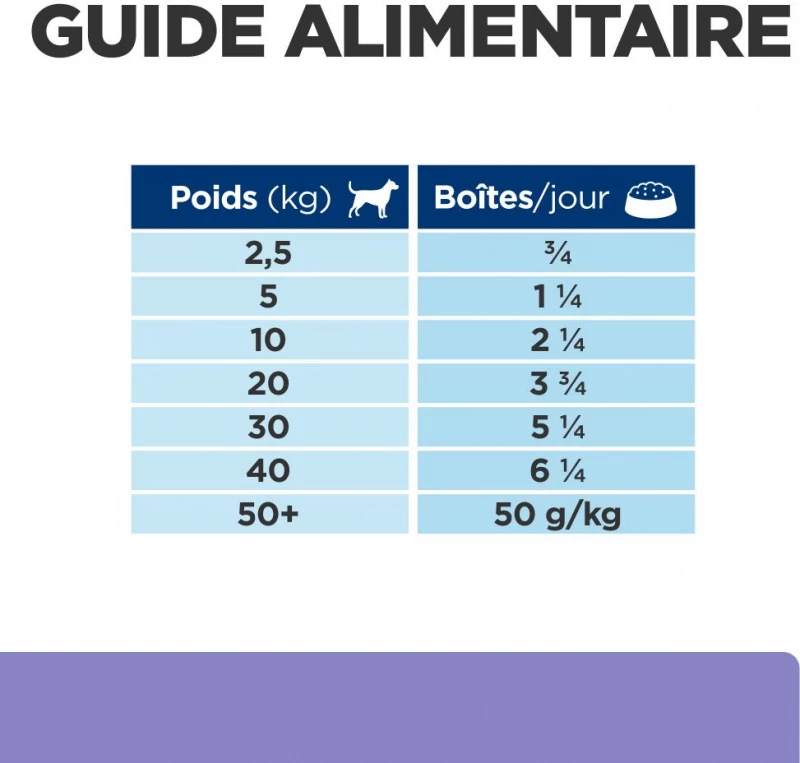 Pas het rantsoen aan om het optimale gewicht te behouden. Vraag bij twijfel advies aan je dierenarts. Voor het beste resultaat: dek het ongebruikte gedeelte af en zet het in de koelkast. Schakel geleidelijk over op het nieuwe voer gedurende een periode van 7 dagen of volg de aanbevelingen van je dierenarts. Laat altijd vers water beschikbaar. Vraag je dierenarts om de toestand van je dier te controleren.