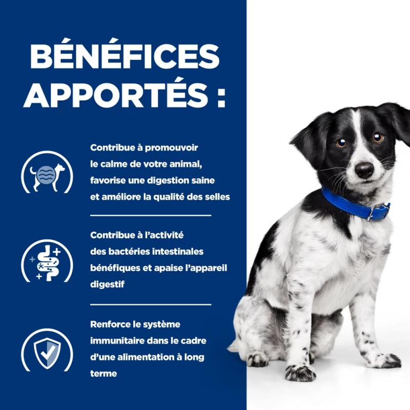 HILL’S Prescription Diet Canine I / D Digestive Care Mini Stress hondenvoer met medicinale werking is een dieetvoeding voor kleine honden (<15 kg) die lijden aan spijsverteringsstoornissen die verband houden met stress. Ze ondergaan vaak periodes van stress die worden gekenmerkt door fysieke reacties, variërend van eenvoudige spijsverteringsstoornissen tot chronische gastro-intestinale aandoeningen. Deze brokken hebben een formule met antistress-eigenschappen om stress te helpen beheersen. Hun licht verteerbare, vetarme recept verlicht en kalmeert de darmen van je huisdier en verbetert de consistentie van hun ontlasting. Verrijkt met prebiotische vezels, draagt ??dit hondenvoer bij aan de ontwikkeling van goede bacteriën in de darm en aan de balans van de darmflora.