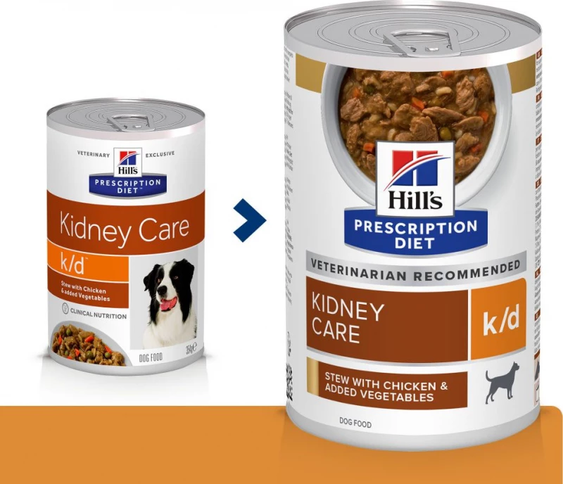 Hill’s Prescription Diet k/d Kidney Care is een volledig dieetvoeder bedoeld ter ondersteuning van de nierfunctie bij chronisch of tijdelijk nierfalen bij volwassen honden. Dit dieetvoeder heeft een laag fosforgehalte en een beperkt gehalte aan hoogwaardige eiwitten.