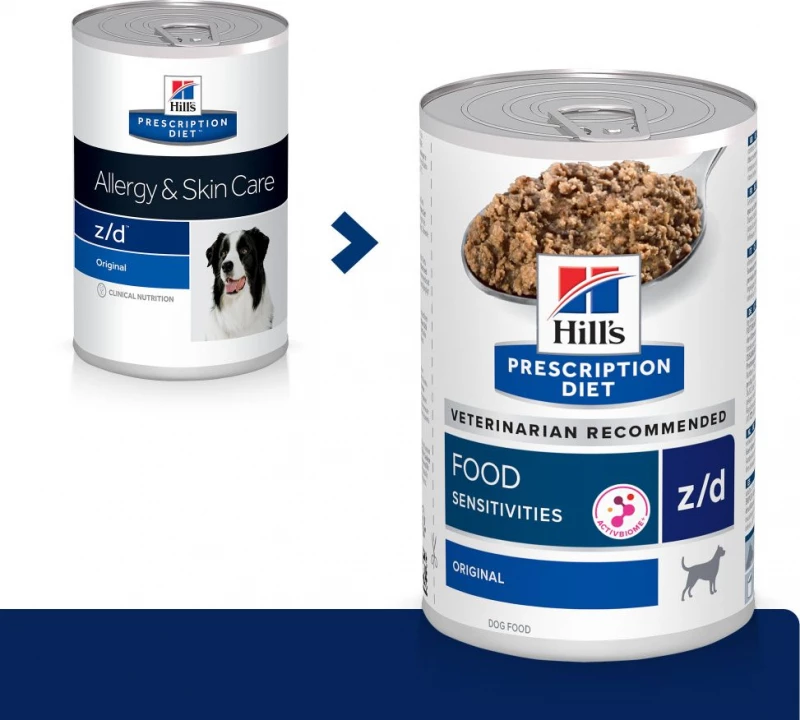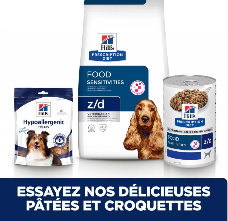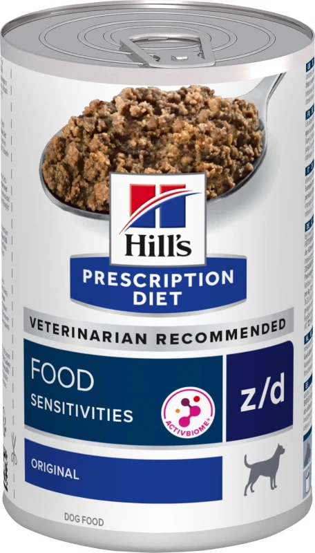 Hills’s Prescription Diet Canine Z/D Food Sensitivies is natvoer voor honden die last hebben van voedselgevoeligheden (intoleranties, allergieën).