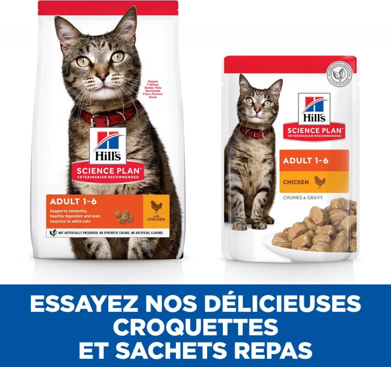 HILL’S Science Plan Adult kattenvoer met kip is een complete en uitgebalanceerde voeding die perfect voldoet aan de voedingsbehoeften van volwassen katten vanaf de leeftijd van 1 jaar tot 6 jaar. Deze heerlijke brokken met kipsmaak zullen je kat zijn hele volwassen leven vergezellen en hem dagelijks gezondheid en evenwicht brengen. Door je kat dit voer te geven, geef je hem alle voedingsstoffen die hij nodig heeft om een gelukkig en bevredigend leven aan je zijde te leiden.