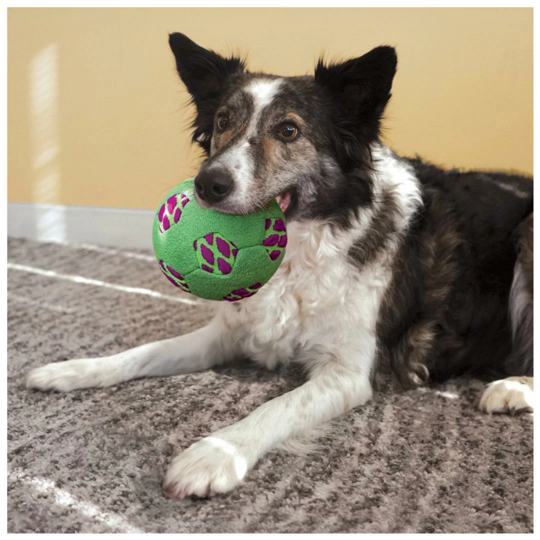 De voetbal vorm is ideaal voor binnen en buiten speelsessies en de meerdere piepers zorgen voor afleiding tot diep in de blessuretijd.