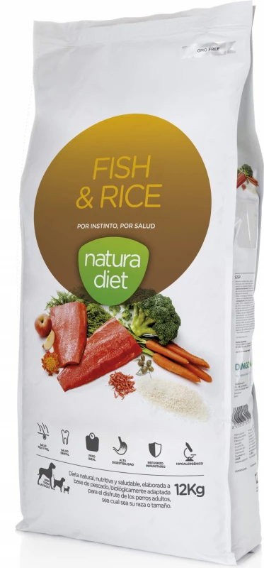 Kenmerken –Â NATURA DIET Fish & Rice met zalm voor volwassen honden: