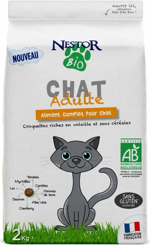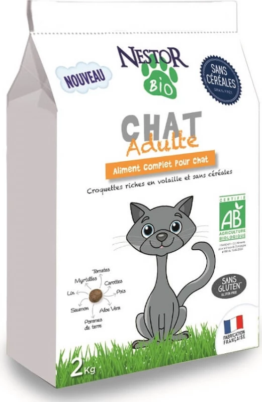 NESTOR BIO biologisch graanvrij kattenvoer is geschikt voor alle rassen van volwassen katten, ze zijn bijzonder smakelijk en zullen alle voordelen van super premium kwaliteitsvoer aan je huisdier bieden.