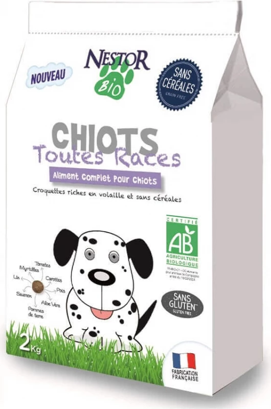 NESTOR BIO biologische puppybrokjes zonder granen zijn geschikt voor alle hondenrassen en zijn bijzonder smakelijk.