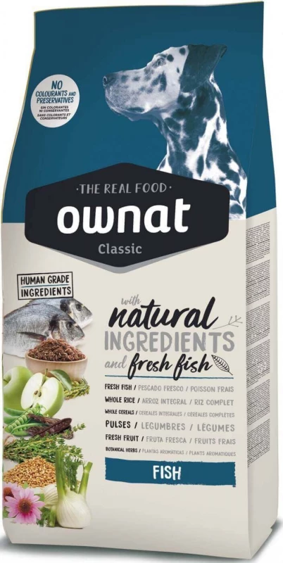 Door te kiezen voor OWNAT Classic Fish hondevoer kies je voor hondenvoer van hoge kwaliteit op basis van verse vis en natuurlijke ingrediƫnten geselecteerd op basis van hun voordelen (volkoren granen, lijnzaad, vlas, gist, botanische kruiden en vers fruit).