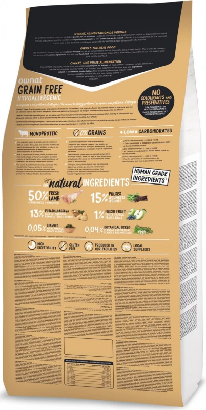 BESCHRIJVING VAN OWNAT Grain Free Hypoallergenic – met lam