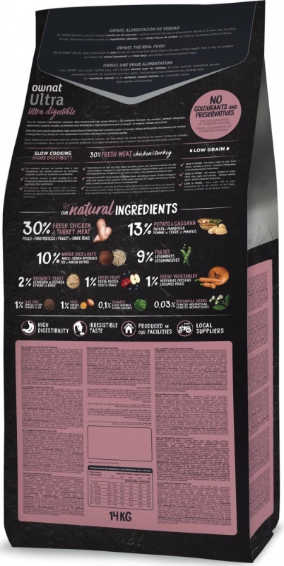 Geschikt voor puppy’s van middelgrote rassen vanaf het spenen tot het einde van de groei. OWNAT ULTRA Medium Junior brokjes bieden een hoge energievoorziening en zijn rijk aan eiwitten die de spierontwikkeling bevorderen. Anderzijds zorgt het uitgebalanceerde aandeel calcium en fosfor voor een optimale ontwikkeling van botten en tanden. Ownat Ultra-brokjes worden zeer langzaam en op lage temperatuur gekookt om maximale voedingskwaliteit en uitzonderlijke verteerbaarheid te verkrijgen