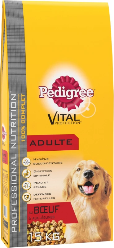 Deze smakelijke brokken zijn gemaakt met natuurlijke ingrediënten voor gegarandeerd plezier! PEDIGREE Professional Nutrition met rundvlees voor volwassen honden helpt je ??hond gezond en vol vitaliteit te blijven. Met een optimale samenstelling van aminozuren uit hoogwaardige eiwitten draagt ??dit recept bij aan sterke spieren. Een recept geformuleerd met een optimaal calciumgehalte, met volkoren en fosfor voor sterke botten en om gedurende de dag regelmatig energie te leveren. De voedingsbehoeften van honden variëren met de leeftijd. Daarom is het belangrijk om ze een dieet te geven dat specifiek is voor hun behoeften.