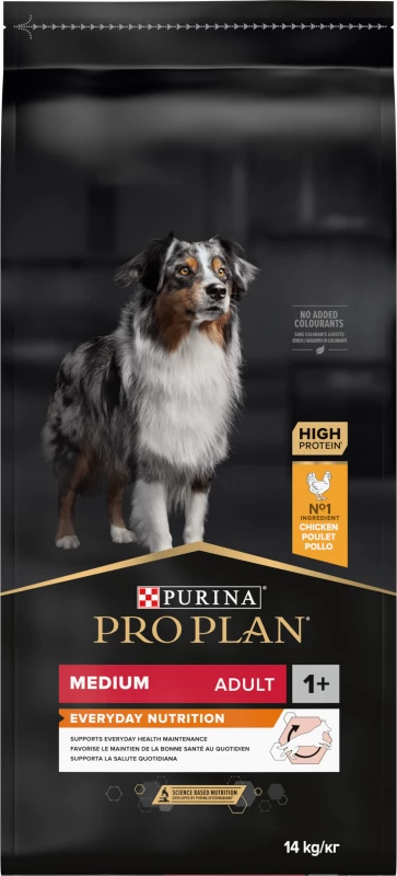 Pro Plan Medium Adult OPTIBALANCE hondenvoer is ontwikkeld door dierenartsen en voedingsdeskundigen, het is ontworpen om geschikt te zijn voor alle middelgrote honden en ze op lange termijn in goede gezondheid te houden.