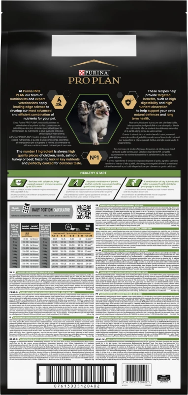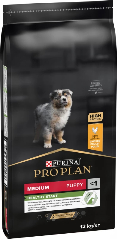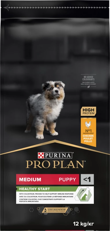PRO PLAN Medium Puppy-brokjes gemaakt van smakelijke stukjes kip en waarvan de grootte is aangepast aan het kaakbeen van puppy’s van middelgrote rassen, zijn erg populair. Ze zijn ontwikkeld door wetenschappers en dierenartsen om te voldoen aan de specifieke behoeften van jonge honden van middelgrote rassen die tussen 10 en 25 kg wegen als volwassen hond. Ze bevatten de OPTISTART-formule, een combinatie van vitale stoffen die speciaal zijn geselecteerd om je puppy te helpen een gezond en actief leven te leiden tijdens zijn eerste levensjaren.