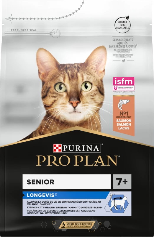 Houd je kat ouder dan 7 jaar gezond door hem het Pro Plan Original Senior Longevis kattenvoer voor volwassenen te geven.