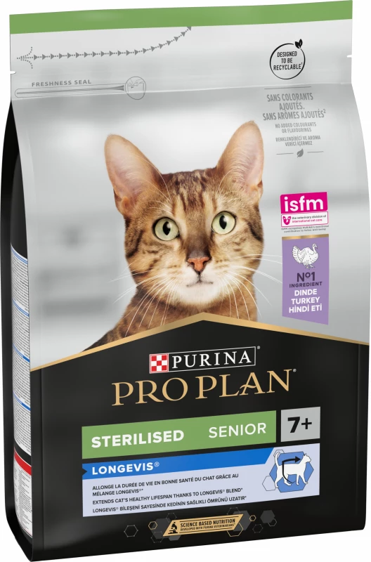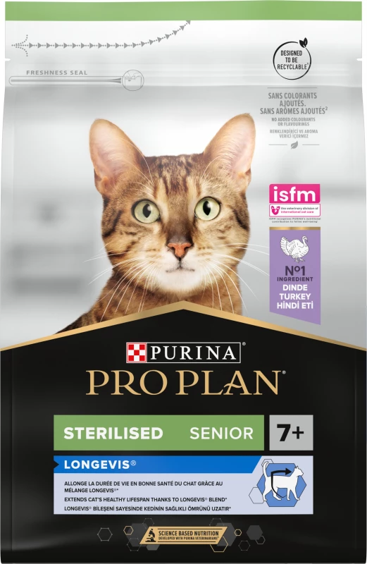 Droogvoer PRO PLAN Sterilized Senior 7+ Longevis verbetert de kwaliteit en de levensverwachting van gesteriliseerde / gecastreerde volwassen katten.