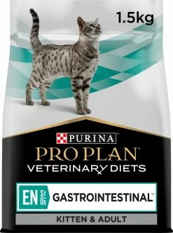PRO PLAN Veterinary Diets Feline EN ST/OX Gastro Intestinal voor katten worden aanbevolen voor volwassen katten of kittens die lijden aan spijsverteringsstoornissen of chronische leveraandoeningen. Een zeer verteerbaar dieet helpt je ??kat om alle essentiële voedingsstoffen op te nemen om het herstel te ondersteunen. Dit voedsel bevat geselecteerde, goed verteerbare ingrediënten om de werklast te verminderen en de darm te verlichten. Het bevat ook een verlaagd vetgehalte, wat belangrijk is voor katten met spijsverteringsstoornissen, en het bevat een soort vet dat gemakkelijk te verteren en te absorberen is (met een hoog gehalte aan middellange keten vetzuren ).