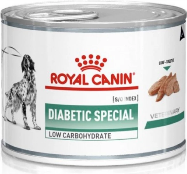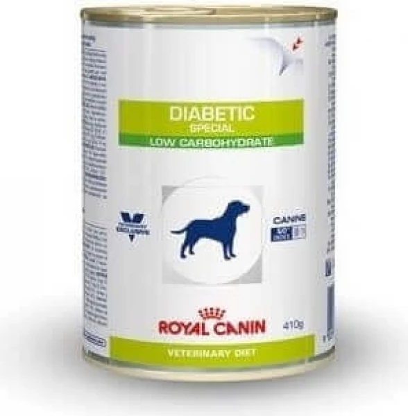 Royal Canin Veterinary Diets Diabetic Special blikvoer is een volledig dieetvoer voor honden met diabetes mellitus. Om een ??goede gezondheid te behouden, is het essentieel om hun bloedsuikerspiegel te reguleren door middel van een aangepast medisch dieet. Deze voeding bevat een laag gehalte aan snelle koolhydraten die glucose vrijgeven.