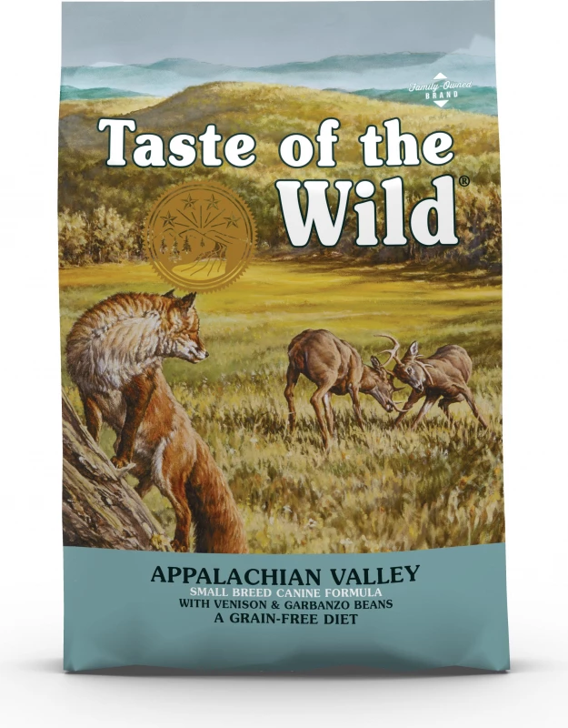 Graanvrij hondenvoer TASTE OF THE WILD Appalachian Valley is geschikt voor alle honden van kleinere rassen van elke leeftijd. Dit gebalanceerd en compleet voer is rijk aan kwalitatief hertenvlees, groenten en fruit voor een goede vertering. Het voer mag gegeven worden als hoofdvoer en eventueel aangevuld worden met de paté van TASTE OF THE WILD om variatie te brengen.