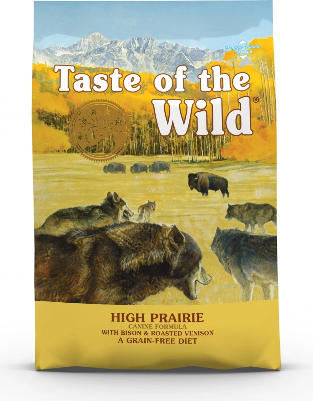 Graanvrij hondenvoer TASTE OF THE WILD High Prairie is voor honden van elke leeftijd (vanaf het spenen) en ras geschikt. Dit gebalanceerd en compleet voer is rijk aan kwalitatief bizon- en hertenvlees en groenten en fruit voor een goede vertering. Het voer mag uitgedeeld worden als hoofdvoer en eventueel aangevuld worden met de paté van TASTE OF THE WILD om variatie te brengen.