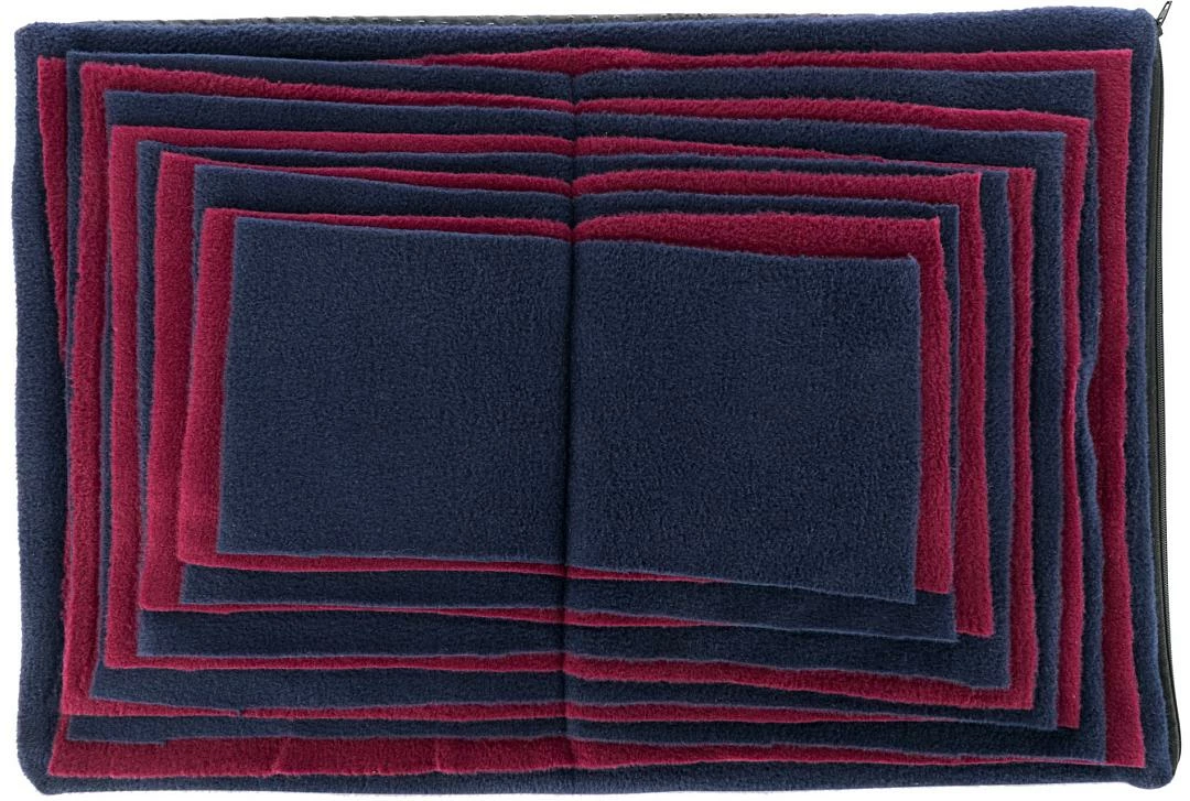 Het TRIXIE Dog Activity Strategiespel Snuffelboek is gemaakt van polyester fleece-lagen van verschillende grootte. Snacks of voer kunnen worden verstopt in het boek voor een leuk spel.