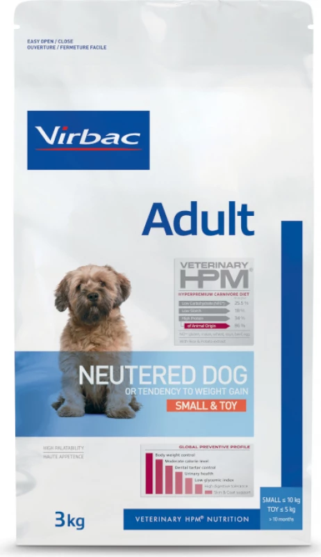 VIRBAC Veterinary HPM Neutred Small & Toy is medisch voer speciaal ontworpen voor gesteriliseerde volwassen, kleine honden (minder dan 10 kg en ouder dan 10 maanden).