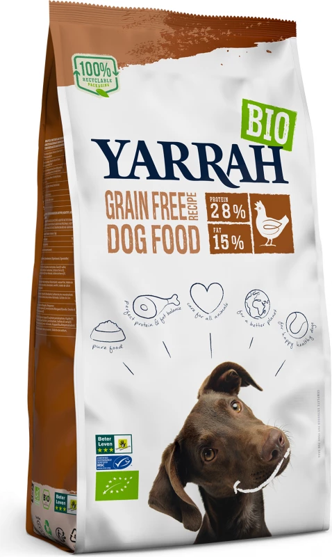 Yarrah is een van de weinige fabrikanten die een volledig assortiment biologische en milieuvriendelijke voedingsmiddelen produceert voor onze viervoetige vrienden. Yarrah selecteert alleen boerderijen waar dierenwelzijn een prioriteit is, geen intensieve visserij dus. Yarrah hondenvoer heeft geen gebruik van chemicaliën of GGO’s, dus je zult er zeker van zijn dat je alleen het beste aan je hond geeft.