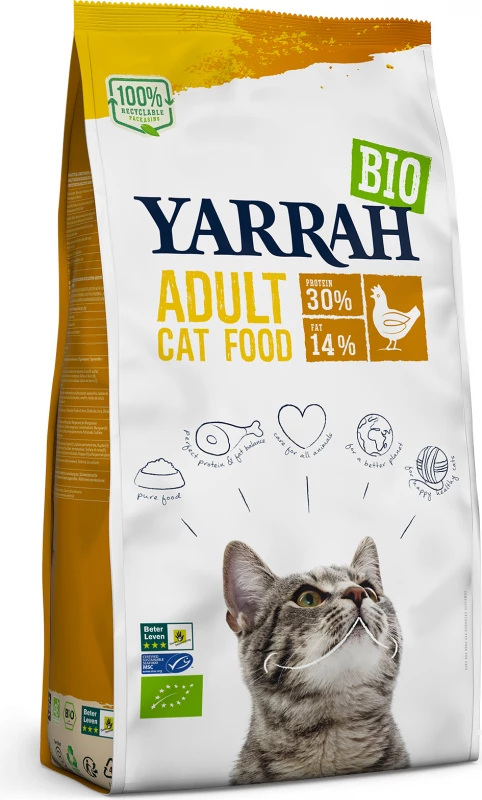 Yarrah is een van de weinige fabrikanten die een volledig assortiment biologische en milieuvriendelijke voedingsmiddelen produceert voor onze viervoetige vrienden. Yarrah selecteert alleen boerderijen waar dierenwelzijn een prioriteit is. Yarrah-voedingsmiddelen gebruiken geen chemicaliën of ggo’s.